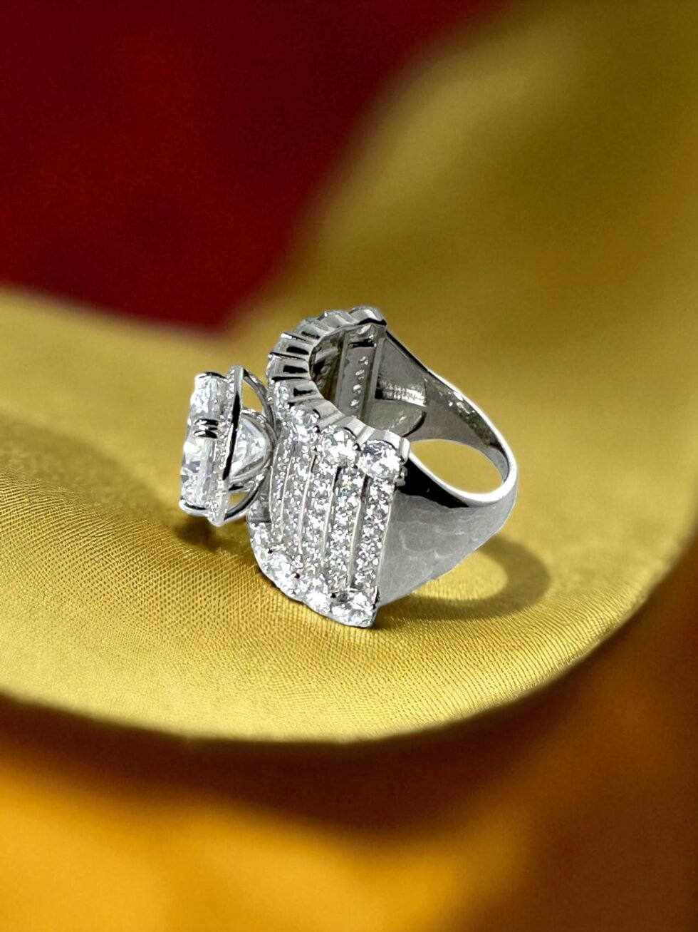 Make a bold and unforgettable statement with this truly magnificent ring from Chandiwaale. Designed for those grand occasions, it features a single, oversized solitaire stone that dominates the design with its intense brilliance and luxurious presence. This impressive piece is meticulously crafted from high-quality 925 sterling silver, ensuring that its majestic sparkle and exquisite detailing remain perfect for years to come. The Monarch Cocktail Solitaire Ring is more than just a ring; it’s a testament to confidence and classic, unbridled glamour.